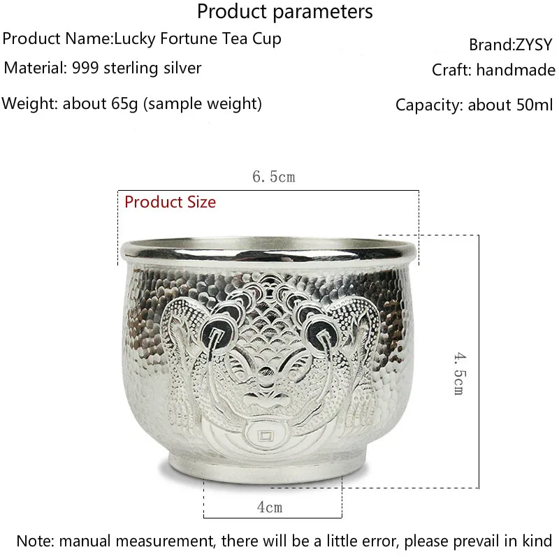 China silver city Ag999 Silver Products Hand made Sterling silver cup Tasting cup Kung Fu Teacup Ca